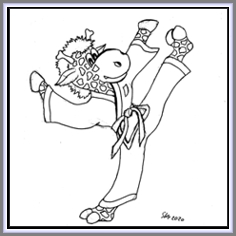 Am Dorfrand steht ein Dojang. Das ist eine Schule für Taekwon-Do und dort unterrichtet der weise Meister Vedi diese alte Kampfkunst. Genaugenommen ist er ein Großmeister im traditionellen Taekwon-Do und natürlich ist er ein Drache.